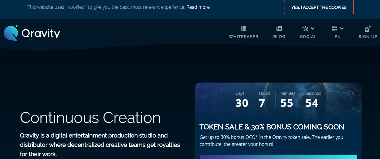 - Meminimalkan risiko, memaksimalkan hadiah. Pembuat konten menerima taruhan dalam proyek yang mereka hasilkan menggunakan Qravity, yang hanya menempatkan dan mendistribusikan konten yang dimonetisasi.